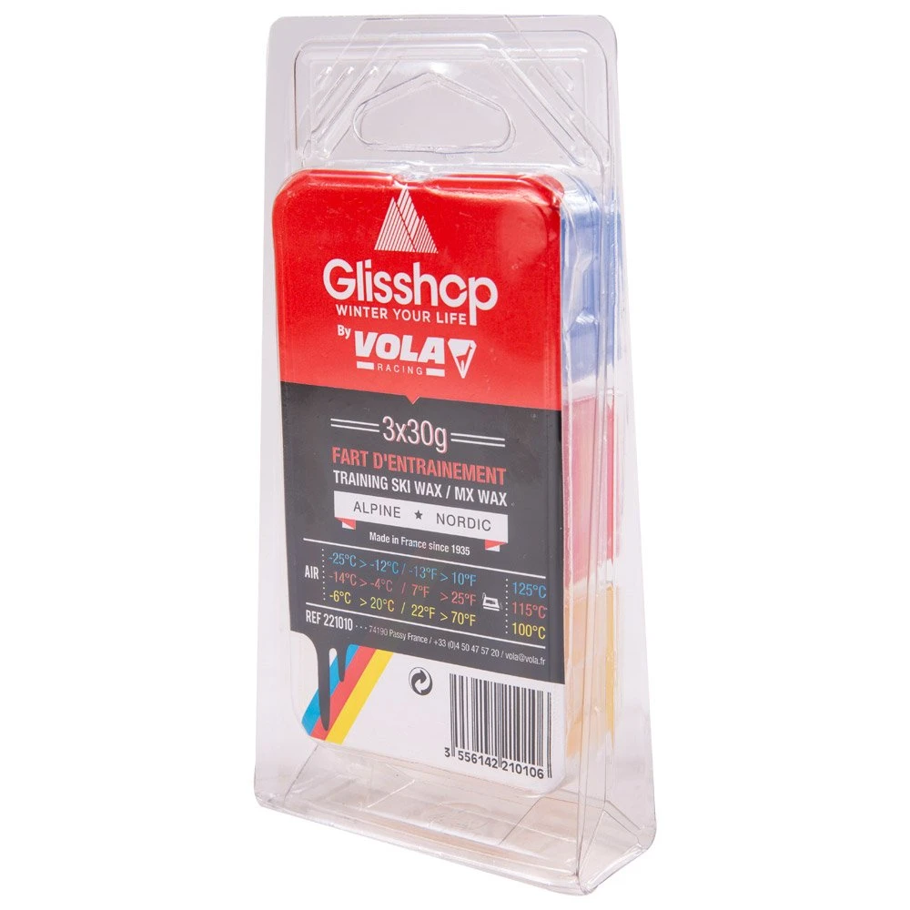 Ce pack Training 3x30g de chez Vola contient trois pains de fart à utiliser en fonction des conditions de température de l’air :